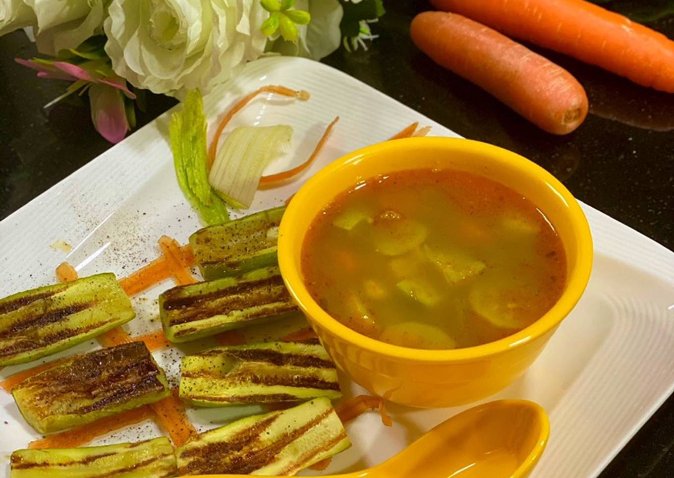 It is quick from start to finish, extremely easy to make and super yum Many people think of marrows as bland vegetables but it is actually delicious Marrow Soup are rich in many essential vitamins and minerals, including vitamin C. They’re also a great source of dietary fiber, which can add to good digestion, reduce cholesterol and promote a healthy heart. Try out this healthy marrow soup with grilled marrow as a complimentary !! #Soup #Grilling #Cookeverypart